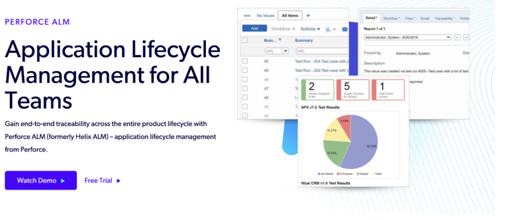 • Best for modular RM, test, and issue management: Perforce ALM — buy Helix RM, Helix IM, and Helix TCM independently or combined.